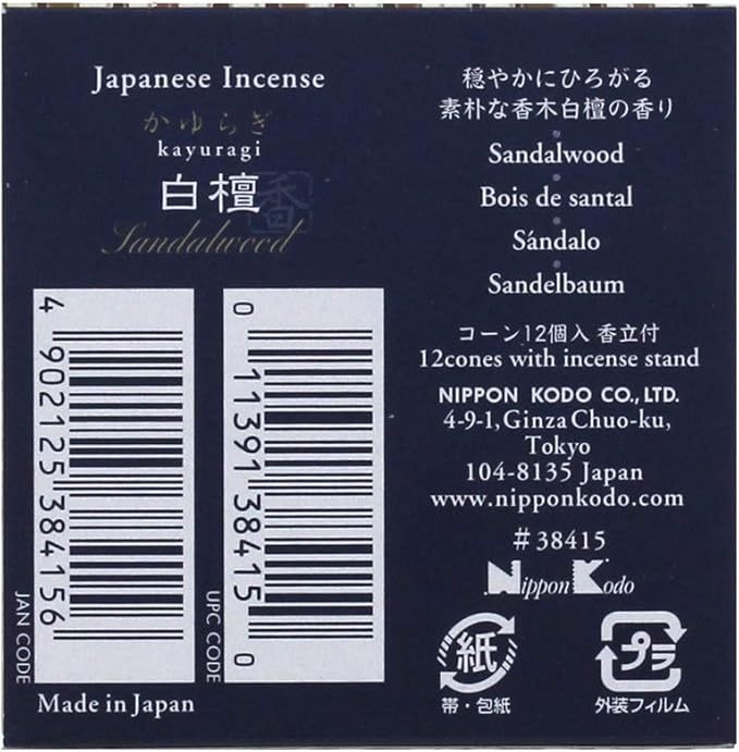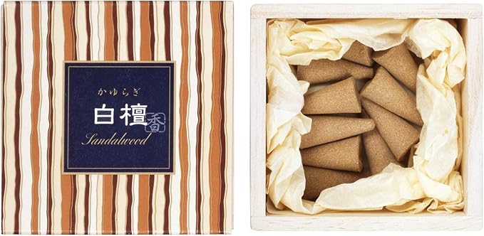 かゆらぎ 白檀 びゃくだん コーン 12個 お香 香立て付 日本香堂 インセンス 線香 日本製 桐箱 サンダルウッド 香木