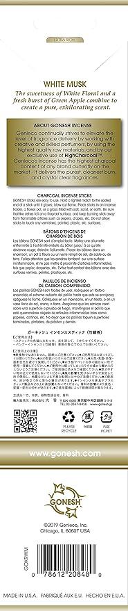 GONESH(ガーネッシュ)インセンススティック(お香)ホワイトムスク(シャボンの香り)20本入 竹線香