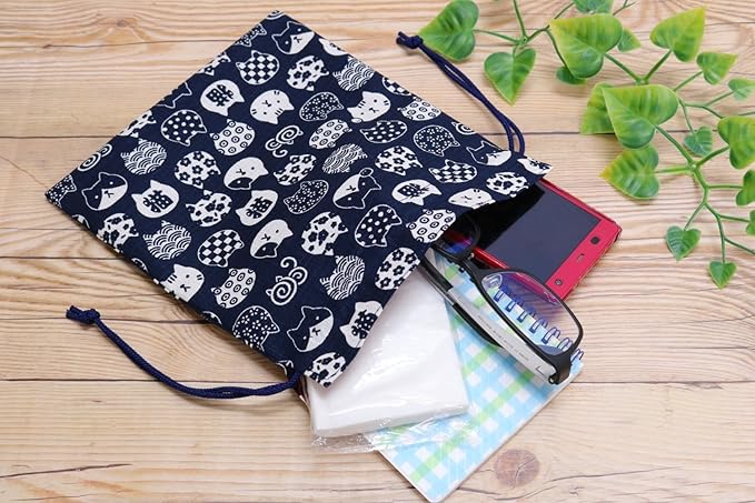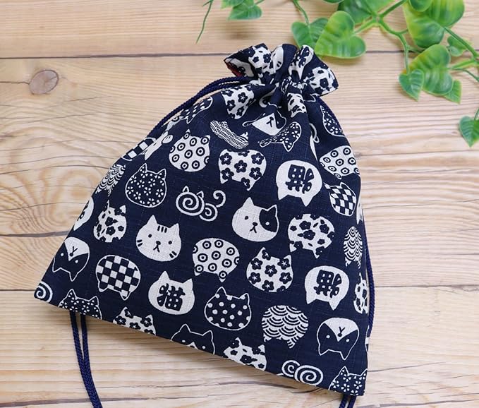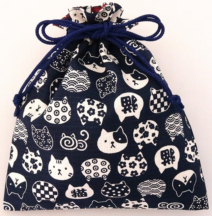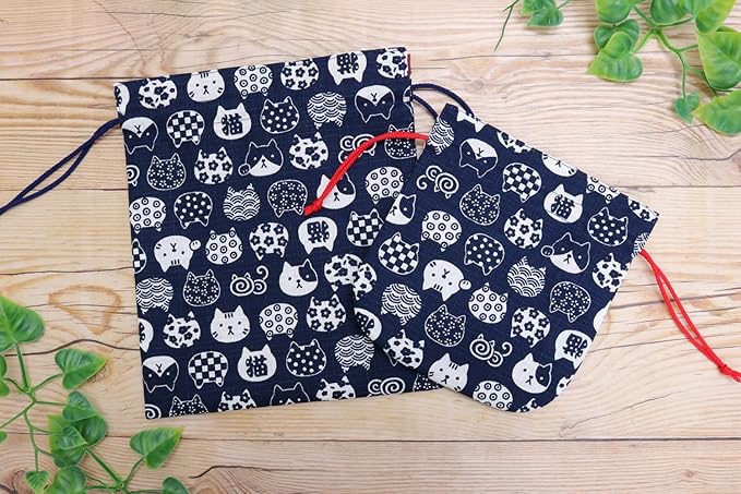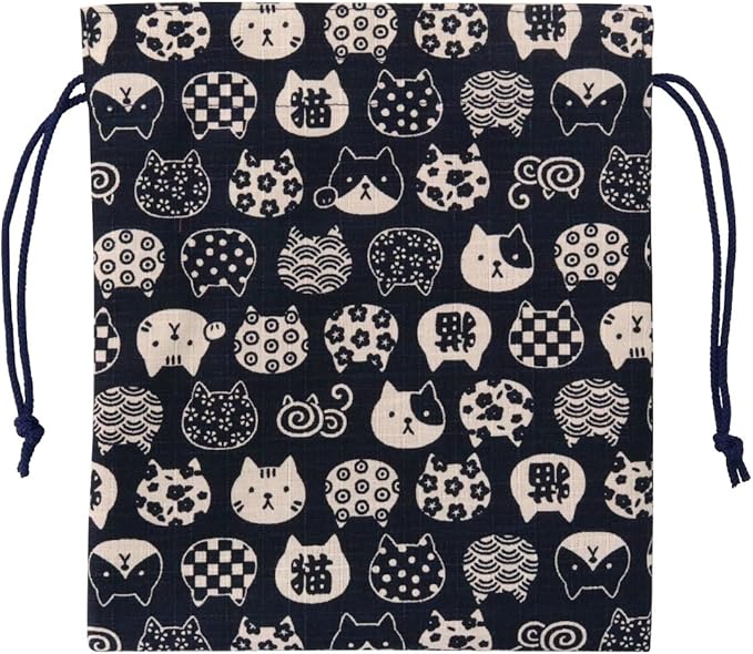 京佑 巾着 袋 御朱印帳 小物入れ 猫 和柄 綿 日本製 にゃんこもん 紺 22.5 22.5cm