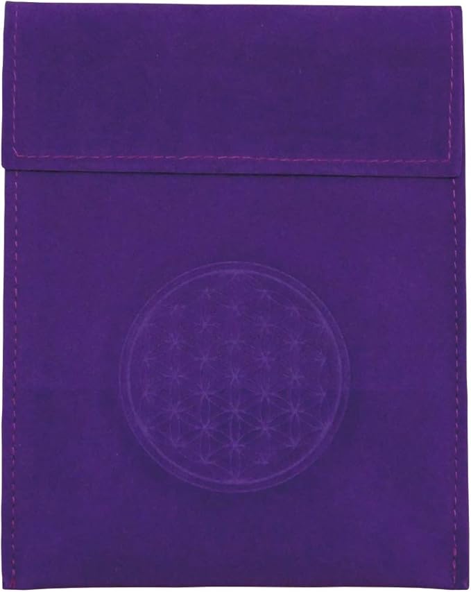常にフラワーオブライフ(Flower of Life)を持っていたい,感じていたいと言う思いから誕生しました。こだわりのハンドメイドです。現代社会で使いやすいサイズとデザインを目指しました。さり気なく持ち歩くのにも使いやすいサイズになっていると思います。高級感をだす為に素材にもこだわり、スエード調の生地を採用しました。シンプルで高級感のあるデザインがポイントです。フラワーオブライフを常に持っていたい、でもあまり主張するのは嫌だ、と言う方にもおすすめです。材質:スエード調生地 サイズ:縦約15cm(蓋を閉じたサイズ)横約12cm 注意(ご了承ください):※サイズに個体差があります。※現物の写真を撮っています。※写真に写っている商品以外の什器及び備品等は、一切含まれません。※ハンドメイドの為、フラワーオブライフ部分に個体差がある場合がありあます。フラワーオブライフの刻印の濃さなど。※本商品は、パープル色です。