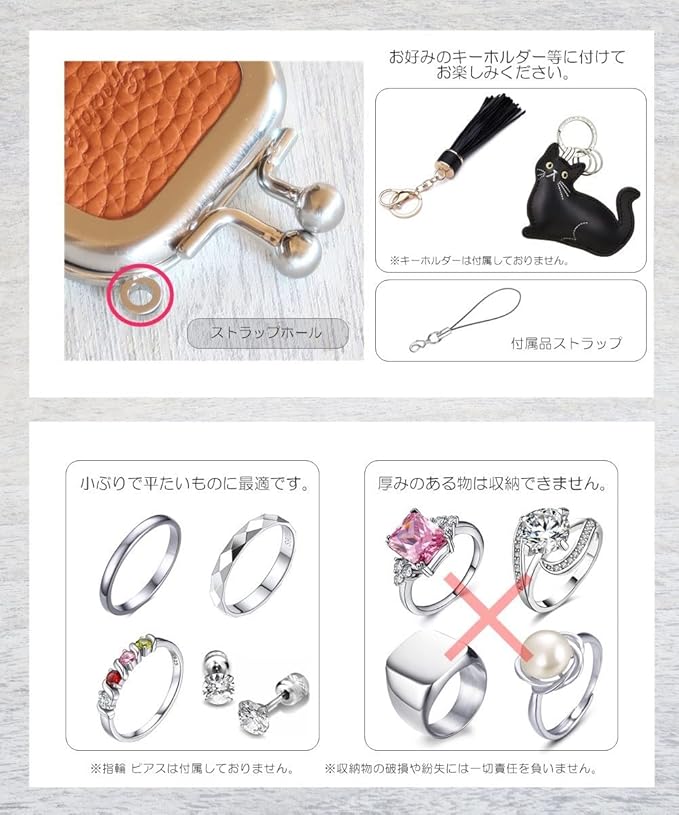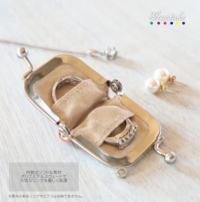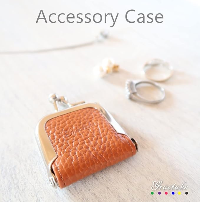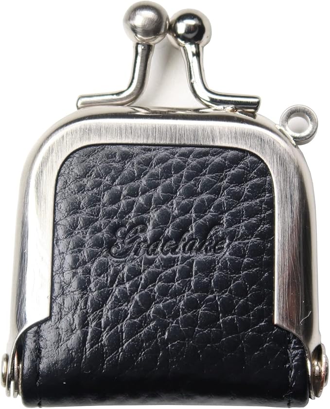 アクセサリーケース 携帯用 ミニ かわいい 指輪ケース 2個用 持ち運び 本革 レザー がま口 レディース 小さい 小銭入れ (ブラック)