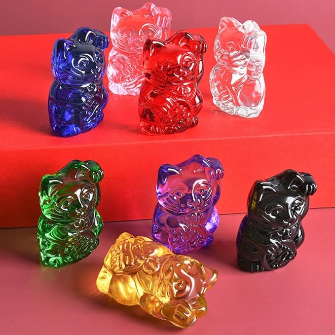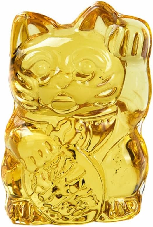 招き猫 クリスタル ガラス 縁起物 風水 開運 グッズ ネコ 猫 置き物 幸運を呼ぶ 福ねこ 金運 アップ 商売繁盛 飾り インテリア オブシェ 小物 置物 (琥珀色)