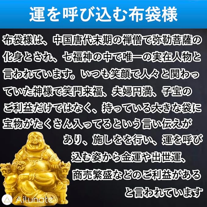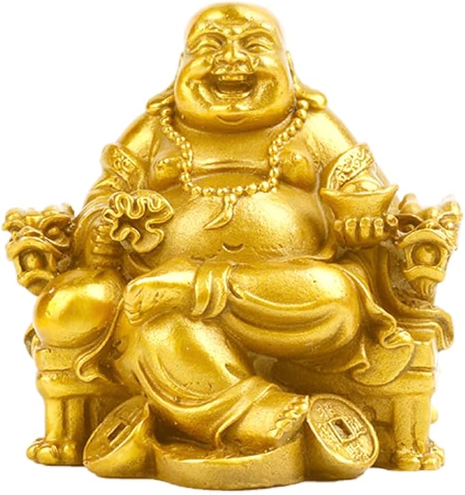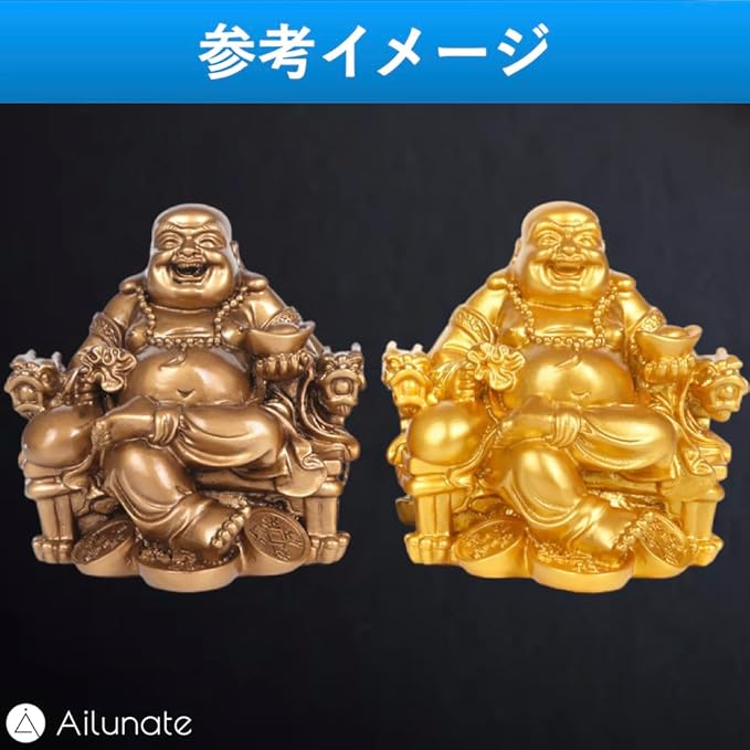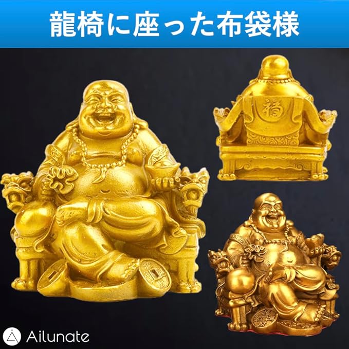 Ailunate 布袋様 置物 仏像 七福神 布袋様の置物 金運 風水 開運 置き物 弥勒菩薩 龍椅に座っている 玄関 縁起物 (ゴールド)