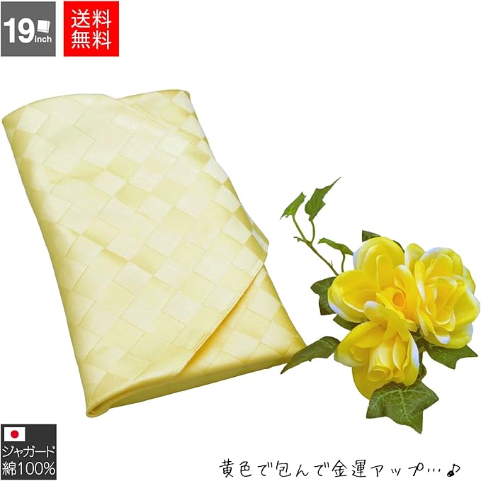 [19inch] 国産 黄色 金色 光沢のある小風呂敷 ナフキン ハンカチ 綿100% 朱子織 サテン織 ギラつかない金色 イエロー ギフト 開運 春財布 宝くじ 金運 開運 風水 一粒万倍日
