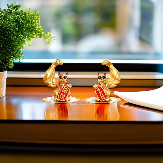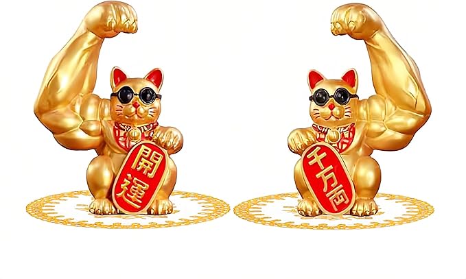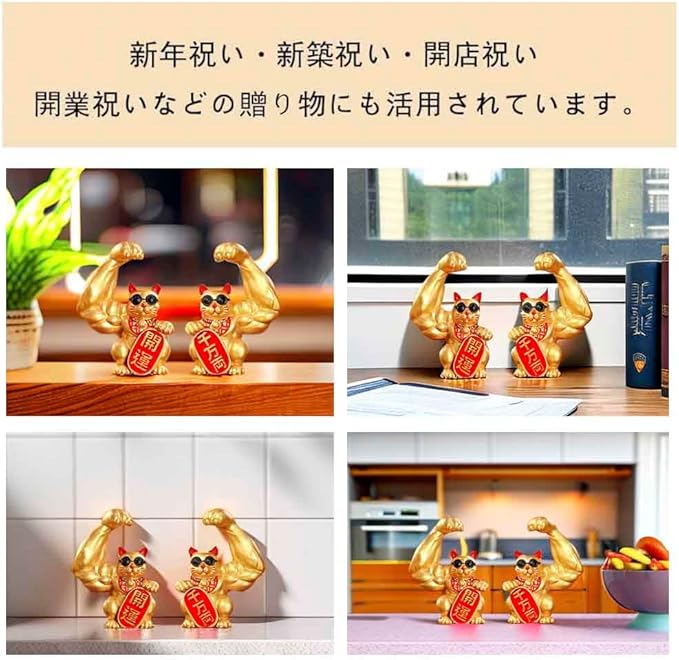 マッチョ招き猫は、サングラス姿もクール。筋肉と血管もリアルに再現、かっこよさと味のある個性的な表情もナイス。元気満載の招き猫は、大きな福をきっと呼びます。