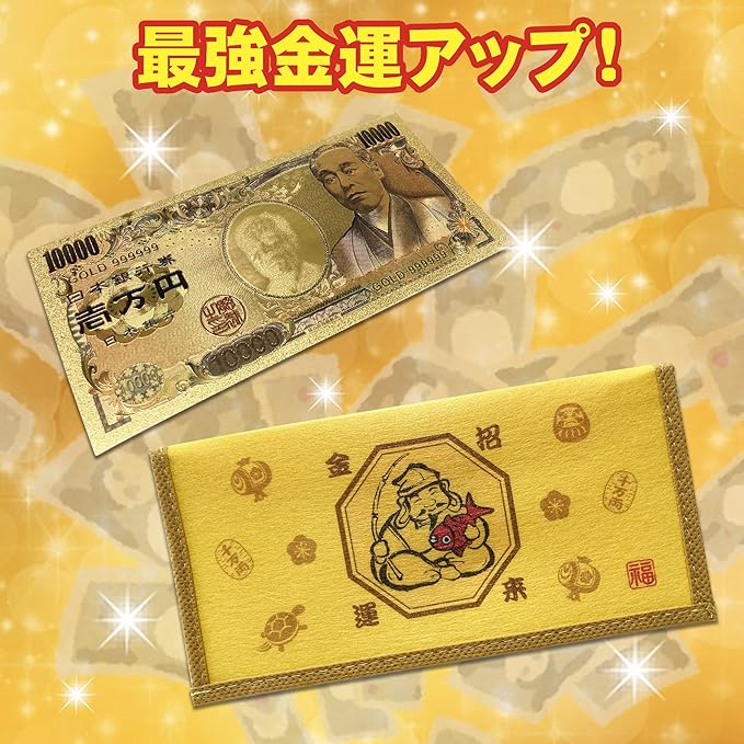 【運気を変える!】開運、金運アップをもたらすゴールドの1万円札に、縁起のいい福を招く七福神のお札入れがセットになって登場しました!2つの運気上昇アイテムで強力な開運、金運アップ!
