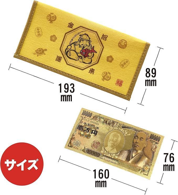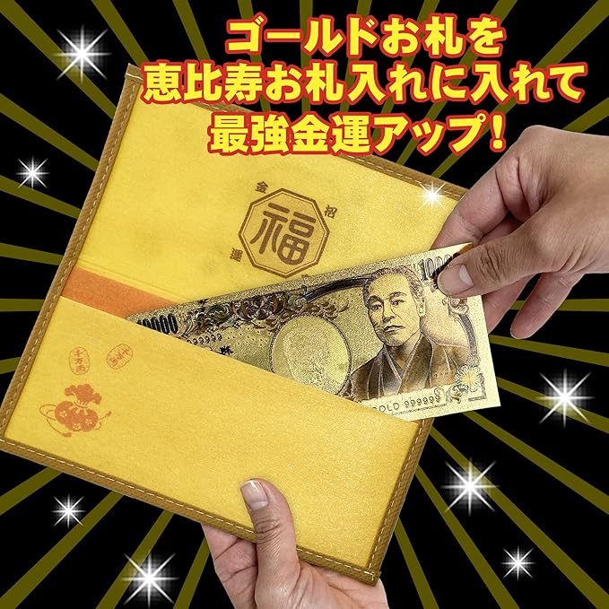 [LamPlanning] 金運アップお財布セット 開運 金運 グッズ ゴールド 1万円札 幸福 七福神 お守り 宝くじ 風水 ハッピー 運気上昇 お札入れ (開運 恵比須様&1万円札セット)