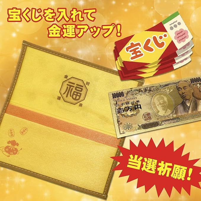 【いつでもどこでも】七福神のお札入れの中にゴールドの1万円札を入れておけば最強の金運アップ!お札を入れておくだけでも金を呼び込む開運アイテムに!また宝くじを入れて金運を上昇させて祈願するのも吉です。また縁起ものですのでバッグの中に入れて置くだけでも開運に繋がります!