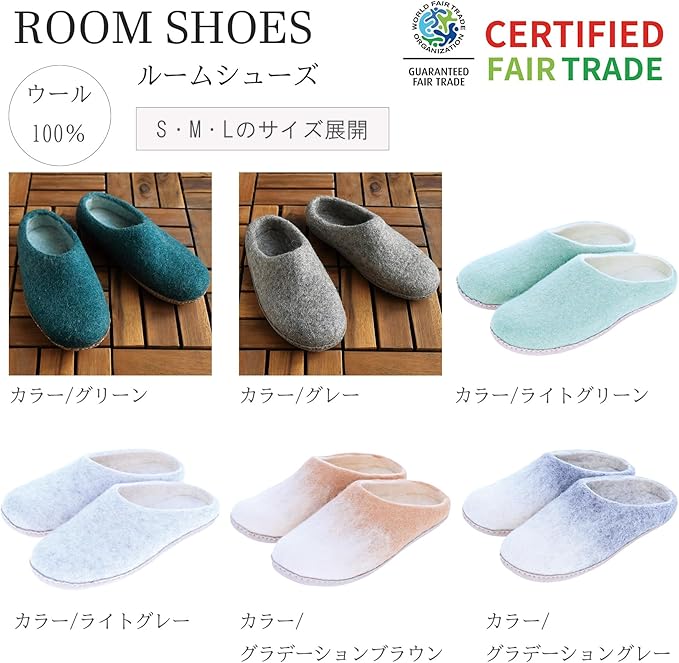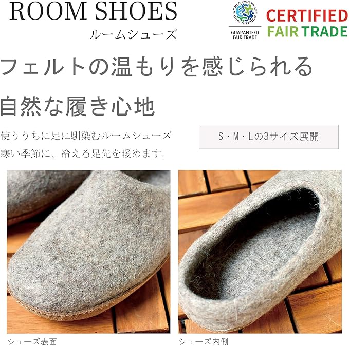 ひとつひとつ手作業で作られた優しい風合いのネパール製羊毛フェルトで作られた商品です。 3サイズ展開(S:約22.5~24cm、M:約24.5~25cm、L:約25.5~26cm)のスリッパです。 ネパール製の商品を購入することで、雇用が生まれ、ネパールで生活する人々の生活を助けることに繋がります。