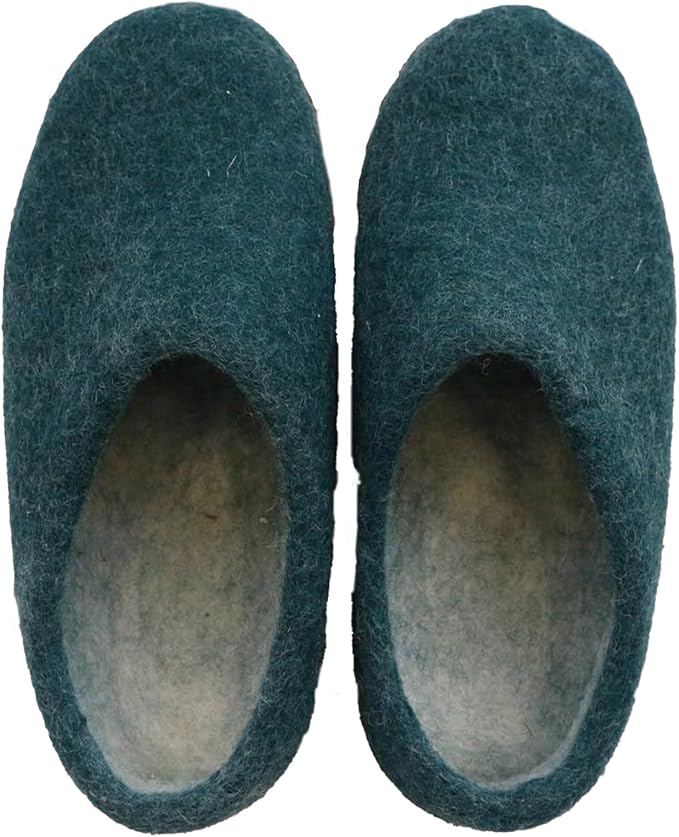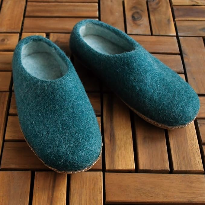丸眞 スリッパ L Nepal(ネパール) ぽかぽかルームシューズ グリーン 約25.5-26cm ハンドメイド 羊毛フェルト 0395005600