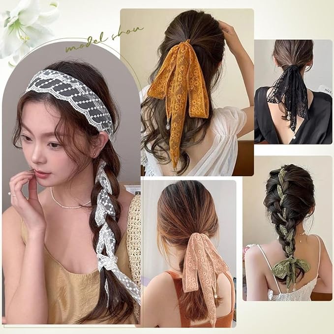 ロングリボンと実用的用途:幅7cm、長さ145cmで、さまざまな髪の長さやスタイルに適しており、さまざまな見た目を楽に試すことができます。スタイリングヘッドバンドに加えて、レースのヘッドカバーはネッカチーフとして着用したり、ハンドバッグのハンドルに巻き付けたりして、アクセサリーにスタイリッシュなひねりを加え、女性の髪に最適なリボンスカーフです。