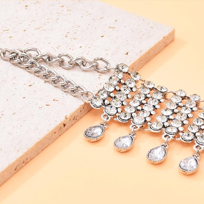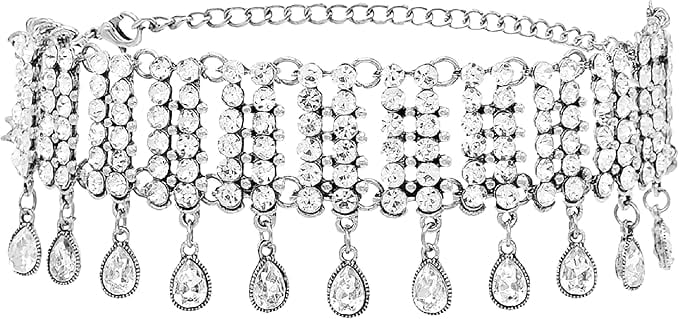 チョーカー ネックレス レディース 結婚式 ダンス パーティー ドレス アクセサリー ビジュー ゴージャス お呼ばれ 卒業式 ディナー フォーマル 社交ダンス ベリーダンス 衣装 小物 (シルバー)