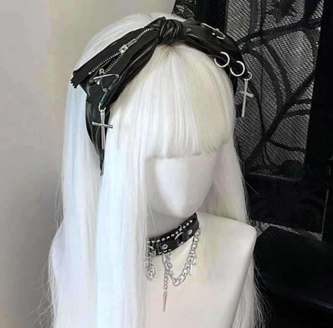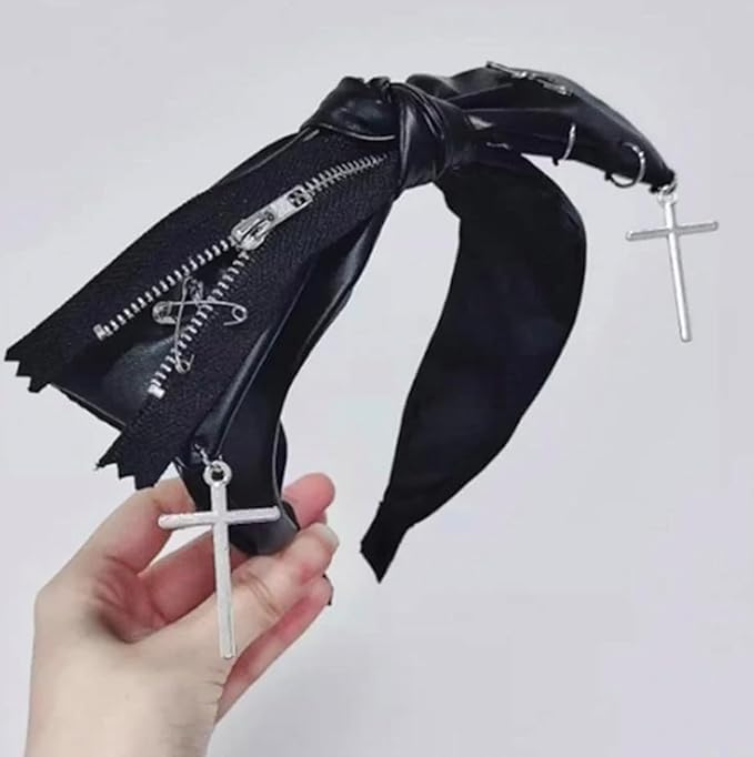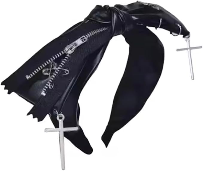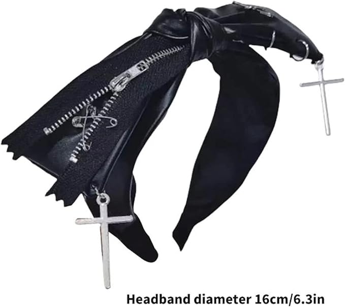 パンク ゴシック レザー ヘッドバンド 十字架 ヘアバンド 黒 蝶結び ジッパー デザイン ヘアアクセサリー フェス 衣装 レディース 個性派 おしゃれ[J's select]