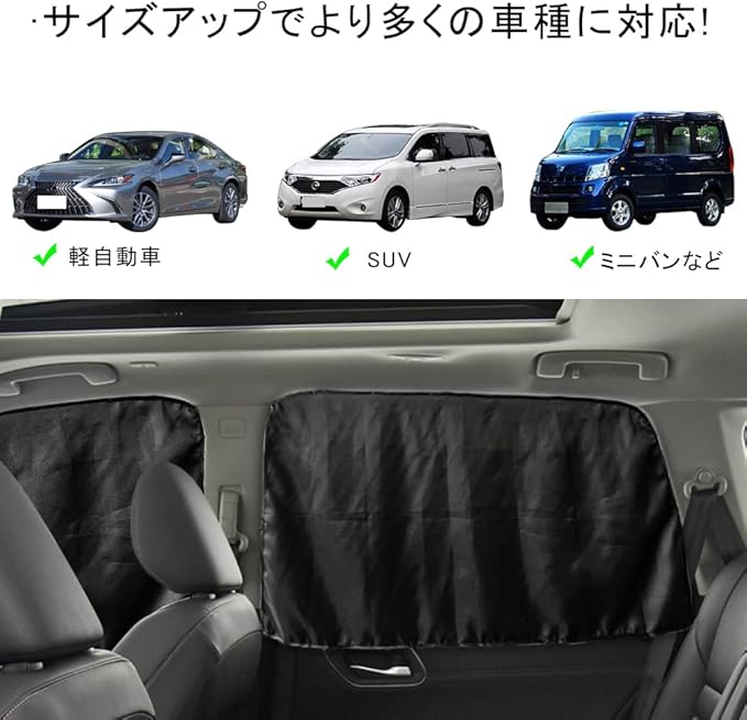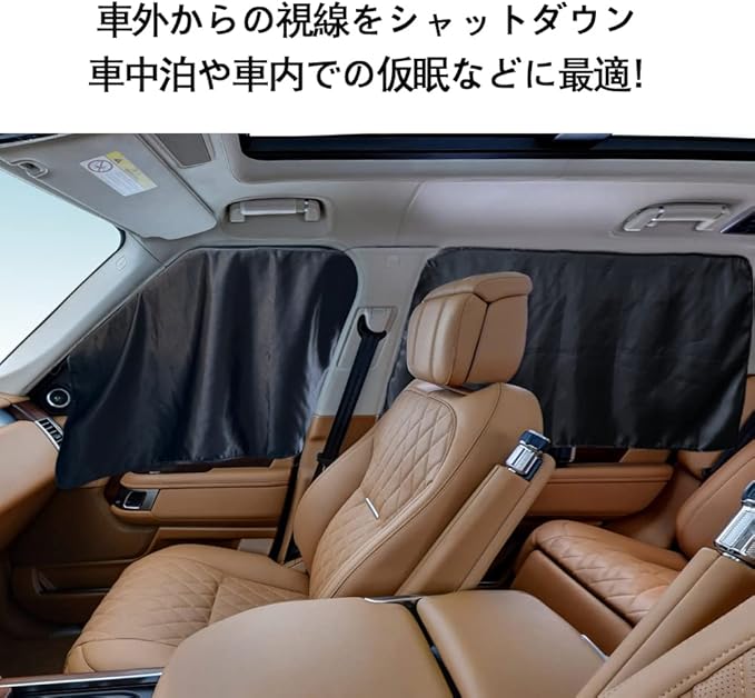 【プライバシー保護】カーテンは4枚入りで、車内での仮眠や車中泊に非常に適しております。また、日よけ、目隠し、盗難防止、プライバシー保護にも役立ちます