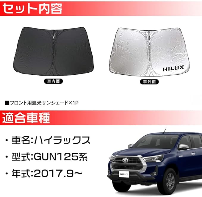 【車種別専用設計】適合車種:ハイラックス GUN125系 専用設計 サンシェード(1セット)車種専用だからピッタリと窓の形状にジャスト。フィットし、外部からの視界をシャットアウト。汎用品では得られない車種専用ならではのフィット感です。