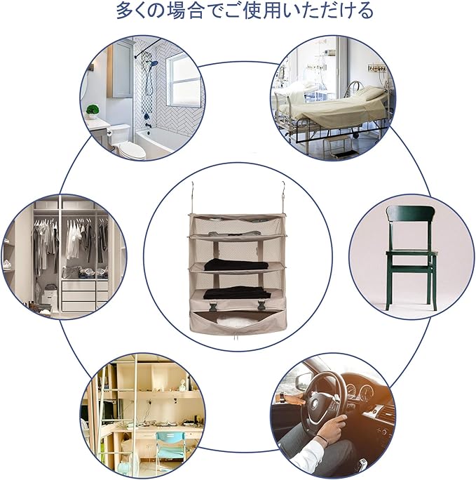 【幅広い適用】取り付けも出し入れも簡単で、見た目もシンプルなので、家のクローゼットだけではなく、旅行先のホテル、学生寮、車内やジムなどの場合も有効活用できます。