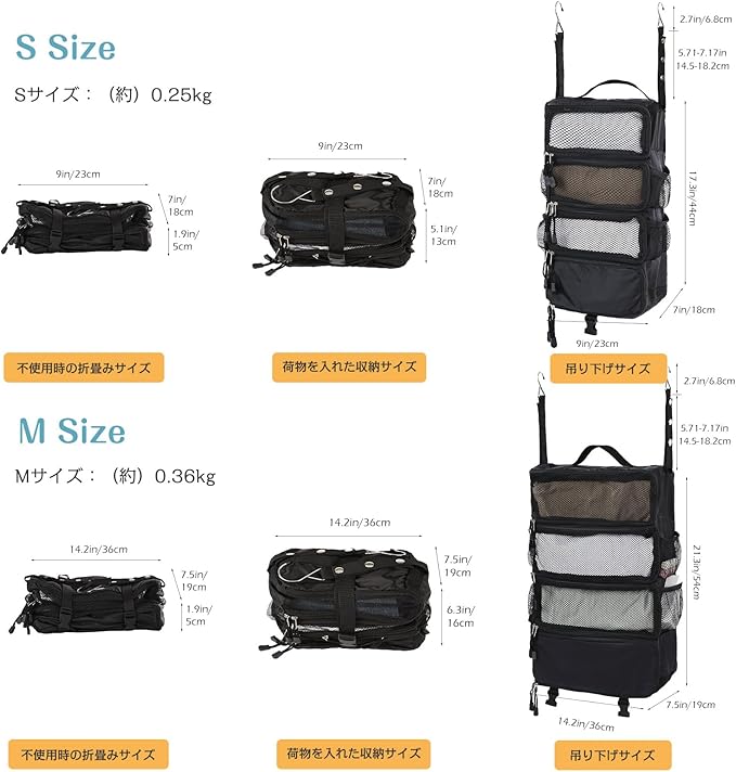 【吊下げタイプ】吊下げタイプなので、壁掛けが可能です。入ることはもちろん、取り出しも持ち運びにも便利です。通気性がいいし、中のものも一目瞭然で、時間を節約、頻繁に出張に行く身としては非常に便利です。