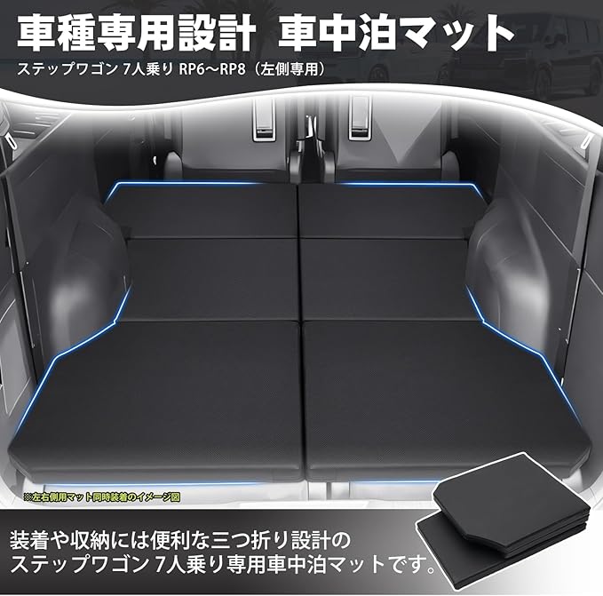 ホンダ 新型 ステップワゴン RP系 7人乗り 車中泊マット ベッド 折り畳み 左側専用 段差解消 快適睡眠 多機能カーマット RP6~RP8 2022年5月~現行 PVC+EPE 超軽量 防水 助手席 車中泊キット 片側 防災グッズ 1個入り