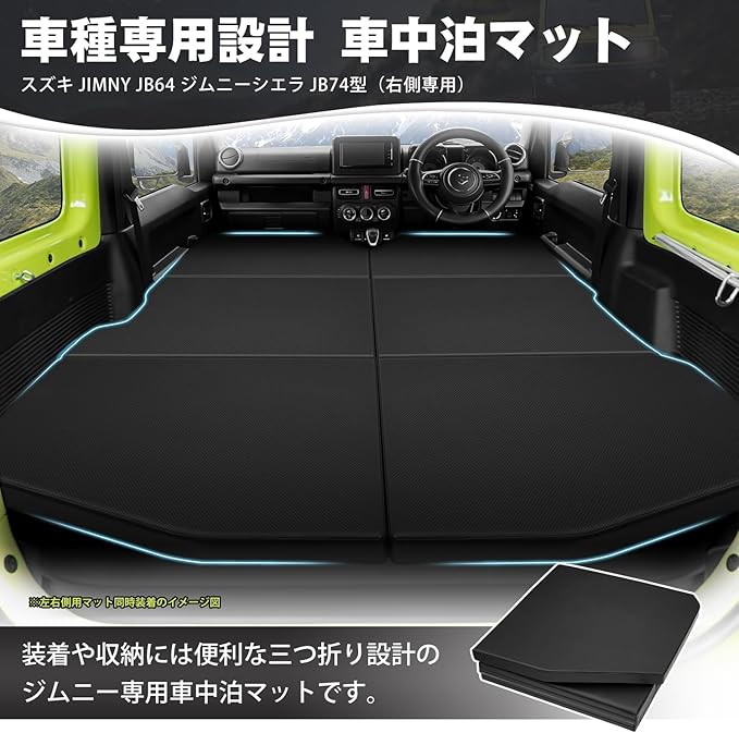 スズキ ジムニー JB64 車中泊 マット ジムニーシエラ JB74 車中泊ベッド 段差解消 快適睡眠 JIMNYに対応 AT車 MT車 多機能カーマット PVC+EPE 折り畳み 超軽量 防水 車中泊キット 片側 防災グッズ 1個入り (1, ジムニー右側用)