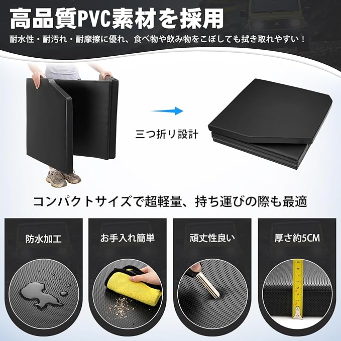 2.【高品質PVC・EPEパールコットン】表面は優れた耐水性・耐酸性・耐アルカリ性・耐溶剤性を持つPVC素材を採用して、食べ物や飲み物をこぼしても拭き取れやすくてお手入れは簡単❕中身は防水・防湿、耐衝撃、遮音、保温、良好な可塑性、強い靭性、リサイクル、環境保護、強い耐衝撃性など多くの利点を持ちのEPEパールコットン素材を採用して、お客様には快適な寝心地を提供させています。