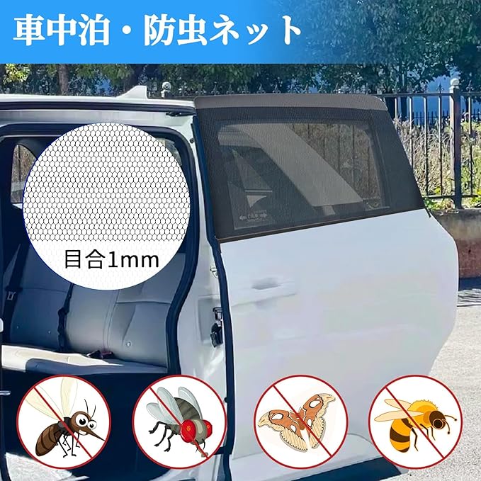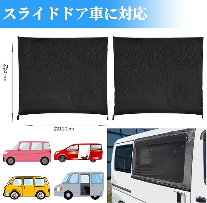 車用網戸 2枚 約110 80cm 車 網戸 ウインドーネット リアドア用 虫よけネット 車 ネット 車中泊グッズ 着脱簡単