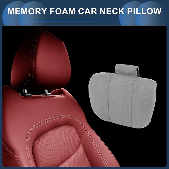 ネックパッド 車用ネックピロー 腰痛 クッション 運転席 頚椎サポート ヘッドレスト カー用品 車内 アクセサリー 車用シートヘッドレストピロー 通気性スエード メモリーフォーム グレー 1個 長距離ドライブ 便利グッズ 車中泊 首枕 旅行 後付け ゲーミングチェア オフィスチェア 自宅用