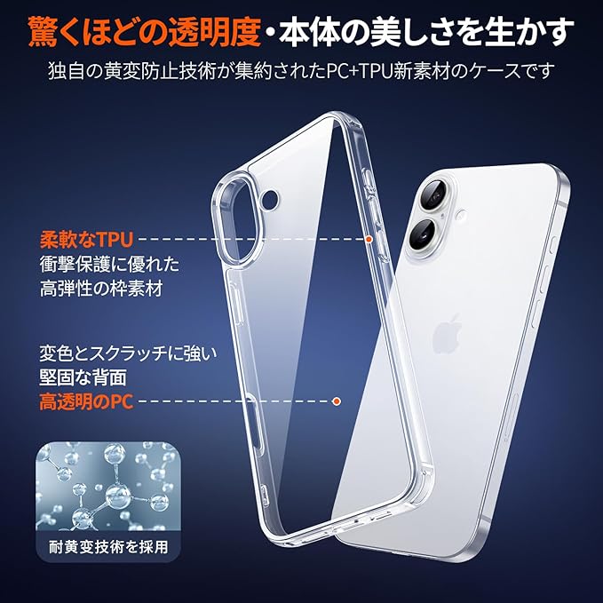【驚くほどの透明度・黄変に強い・本体の美しさを生かす】背面は厳選した高透明度、更に耐黄変に強い特殊なポリカーボネート素材を採用、指紋がつきにくい・黄ばんでなく正真正銘のクリア、スマホ本来の崇高な美しさと色をそのままに生かし、スマホ本体の高級感にも劣らない美しさです。クリアケースの裏面に、家族やペットの写真、シールなどをいれて自分好みのアレンジできます。季節や気分で変えて毎日を笑顔で過ごしましょう!
