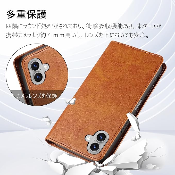 【多重保護】スマホケース iphone 17 用の四隅にラウンド処理がされており、衝撃吸収機能あり。内部のairチックはTPUソフトケースで、破損することはありません、取り付け・取り外しが簡単で、スマホ本体へのスレ傷が防止できます、衝撃から本体を360 保護します。使われているマグネット式の設計により、スマートフォンをしっかり固定できます、開閉簡単。