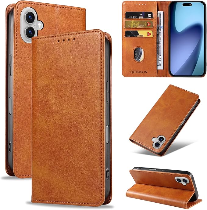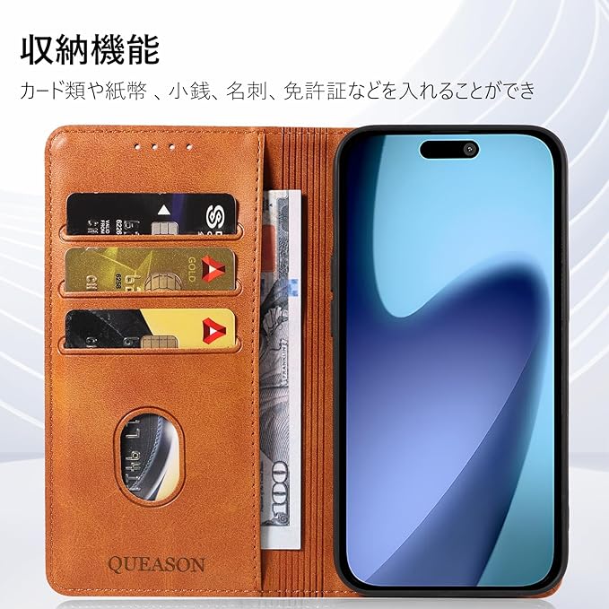 QUEASON【iPhone 17 用 ケース 手帳型】マグネット式 あいふおん17 用 ケース 手帳型 スタンド機能 アイフォン17 用 カバー カード収納 いphone17 用 カバー 耐衝撃 落下防止 防塵(カーキ)