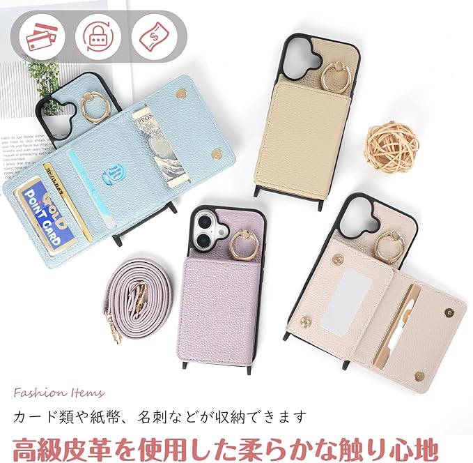 【収納機能】ケース内側には3つのカードスロット女性には必須のミラーもう付きます!カード類や紙幣、名刺などが収納できます。普段の生活に便利をもたらします。ケースには鏡が内蔵されているので、外出先でいつでもどこでも化粧直しができる。