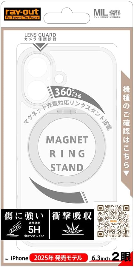 【保護・機能・利便性、全てを最高レベルで】米軍MIL規格の耐衝撃性、MagSafe対応、多機能リングスタンドを一つのケースに集約。あらゆるニーズに応える究極のオールインワン・クリアケースが、あなたのiPhoneを未来のデバイスへと進化させます。