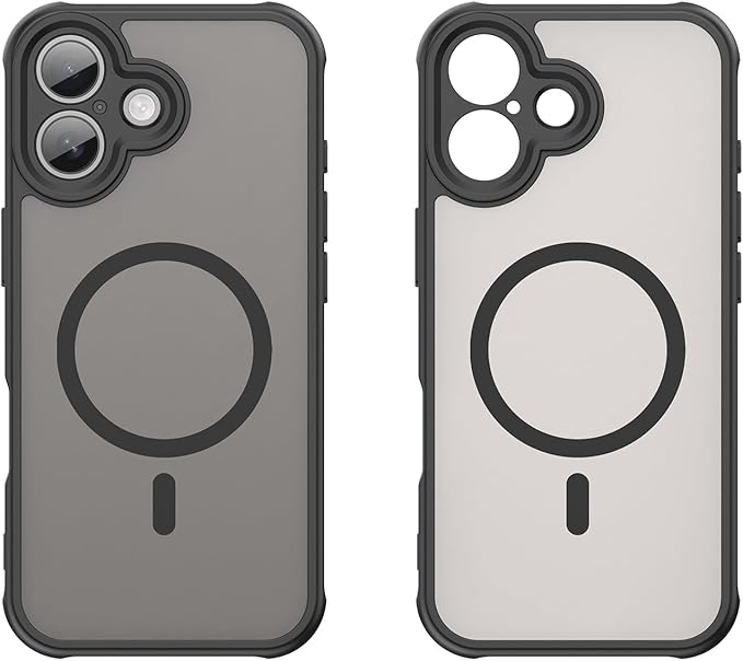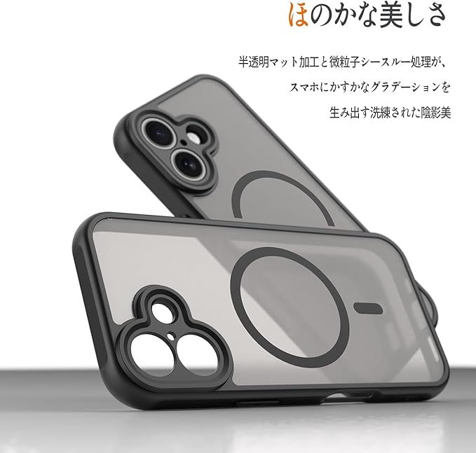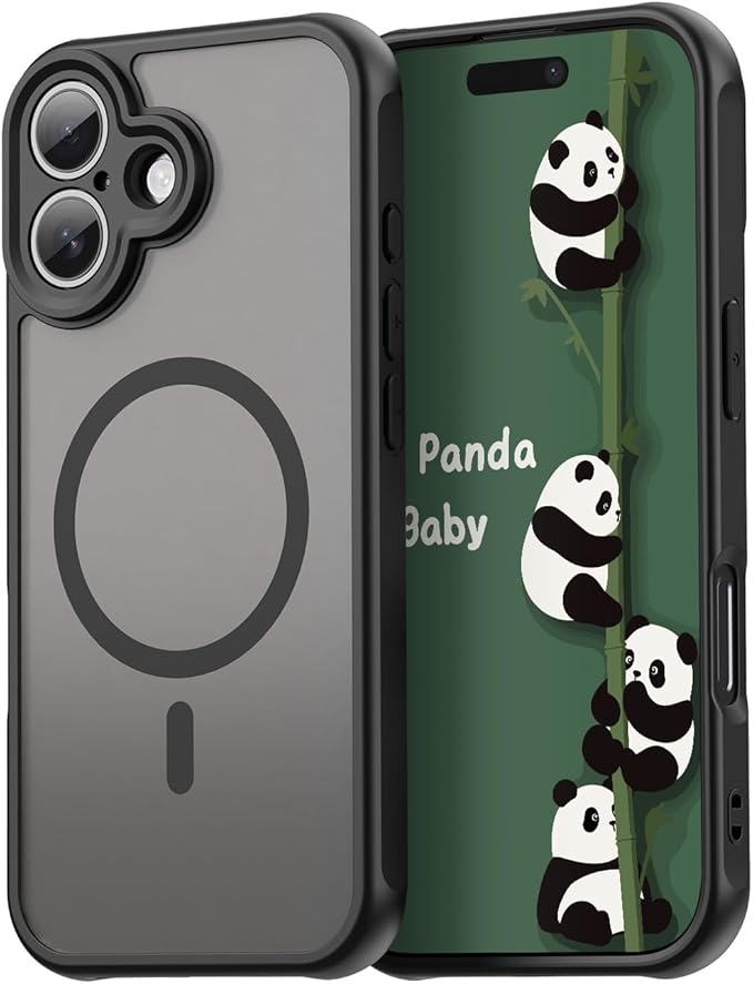 Panda Baby iPhone 17 用 ケース MagSafe対応 半透明 マット質感 指紋防止 薄型 耐衝撃バンパー マグネット搭載 レンズ全面保護 (ブラック)