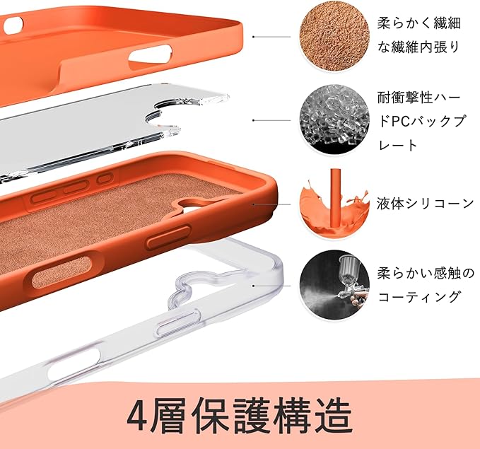【全面的に保護】高品質な液体シリコン製で、柔らかく弾力があり、優れた耐衝撃性でスマホを守ります。内側は柔らかいファイバー素材で、より包括的な保護を実現