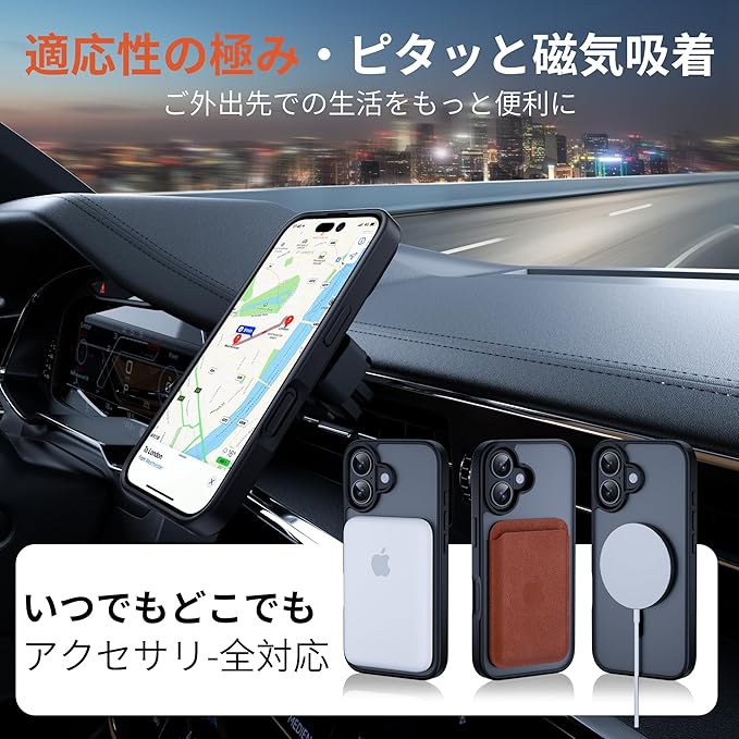 【MagSafe対応・強力な吸着充電】内蔵された強力なマグネットでピッタリと密着し、MagSafeに対応した全ての機能と完全に互換性があります。iPhone17の充電効率が大幅に向上しました。 アイフォン ケース を外すことなく、MagSafe充電器、MagSafeバッテリー、MagSafe車載ホルダー、MagSafeリングなど、全てのMagSafeアクセサリーを使用できます。スマホを充電する時は、アイフォン ケースを装着したままMagSafe充電器に取り付けるか、Qi規格の充電器の上に置くだけです。充電できていなかったということを避けられるのが魅力です。より簡単で、より高速で、日常生活に便利な iPhone 17 ケース です。