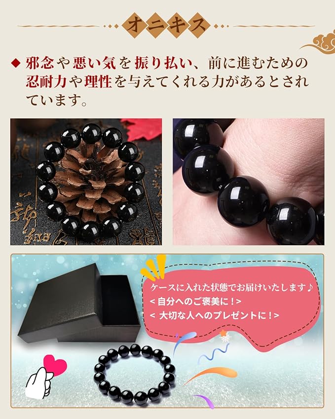 [GELLVO] 天然石 黒瑪瑙 オニキス 数珠 厄除け 魔除け 上質 浄化用さざれ パワーストーン ブレスレット