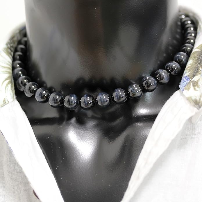 [石輝] 4A天然石 ブルータイガーアイ数珠ネックレス12mm 金運・仕事運を導くパワーストーン![n167]