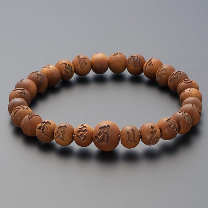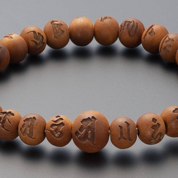 白檀の中でも、最上品であるインド白檀に、「光明真言(こうみょうしんごん)」を彫り込んだ腕輪念珠(ブレスレット)です。インド白檀は高品質のお香の原料として使用されますので香りも格別で、心を癒してくれる上品な香りを味わって頂くことが出来ます。