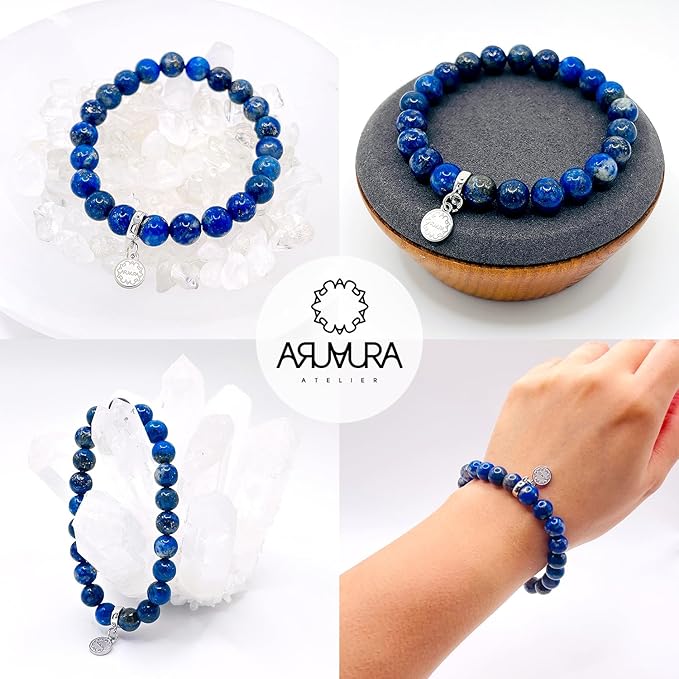 [ARUAURA] 開運 ラピスラズリ 青金石 天然石 パワーストーン ブレスレット 8.5mm 数珠 お守り 幸運 叡智 真理 仕事運 厄除け 癒し 浄化 ヒーリング マインドフルネス ギフト プレゼント アクセサリー レディース メンズ 男女兼用 ハンドメイド AURA0012