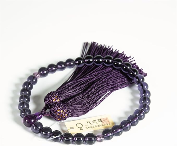 サンメニー 本格 お数珠 念珠 日本製 京念珠 泉ハリ 紫 水晶 女性 用 葬儀 お 通夜 お葬式 片手 数珠 お念珠 ブレスレット 紫水晶 紫紺房 葬儀用 毎日の お参り お供え 手元供養 に 本格的 な 京都 職人 手作り 全て の 宗派 贈答 贈り物 おくりもの プレゼント ギフト 8mm 玉 [Sunmany]