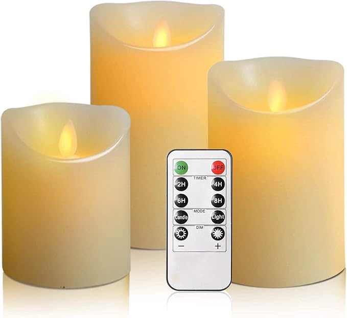 ▶【セット内容】: LEDキャンドル 3本 サイズ:L(直径7.5cm 高さ15cm)、M (直径7.5cm 高さ12.5cm)、S(直径7.5cm 高さ10cm)単3電池(別売り)、リモコン*1、リモコン用電池:ボタン電池1個(付属)、取扱い説明書*1 ✅【注意事項】LEDランプの寿命は50,000時間以上です。次のようなヒントにもっと注意を払う限り、それは再利用可能です。 ※このろうそくは本物のワックスで作られており、可燃性です。このろうそくに火をつけようとしないでください。 ※直射日光を避け、熱源から遠ざけ、極端な温度にしないでください。ろうそくが柔らかくなったり溶けたりすることがあります。※防水性がないため、水のかかる恐れがある場所では、ご利用にならないでください。