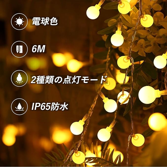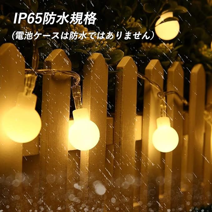 【生活防水&防塵仕様】ストリングスライトはIP65の防水防塵仕様で、屋内での飾りはもちろん、屋外でも雨や雪の日にも安心でご利用いただけるようになります。ご注意:電池ボックスは防水ですが、電池は防水ではないため、水に入れないでください。