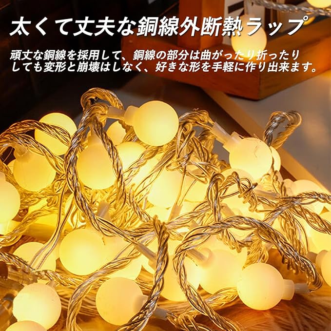 【耐久性&安全性】デコレーションライトは高品質な純銅線と環境に優しい柔らかいTPV素材を採用し、柔らかく強靭で折れにくい。電球は環境に配慮した省エネLEDを採用しており、消費電力が少なく、数時間の作業で発熱や火傷の心配がなく、触っても安全です。