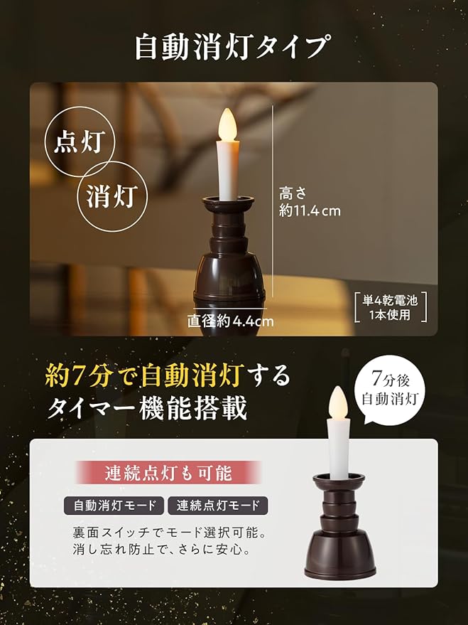 (日本製 自動消灯 火を使わないろうそく) LEDロウソク 仏壇用 電気ろうそく led ろうそく 電池式ろうそく 安全 仏壇用ledろうそく ブラウン