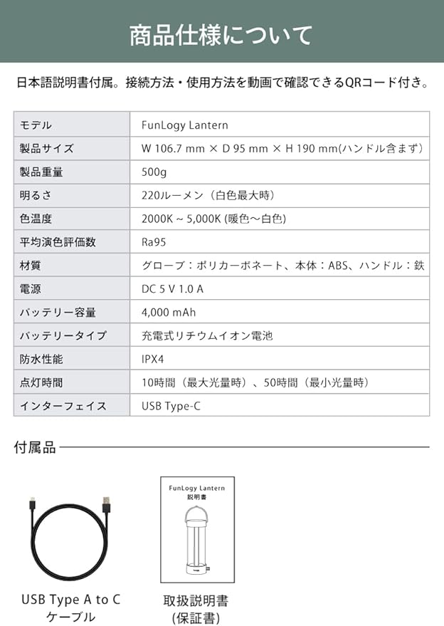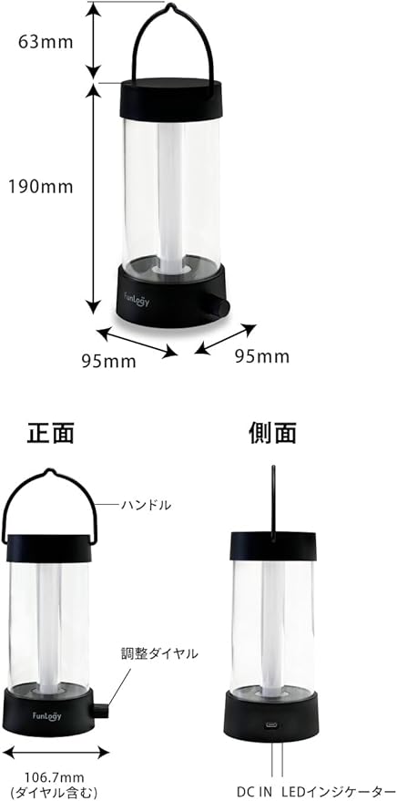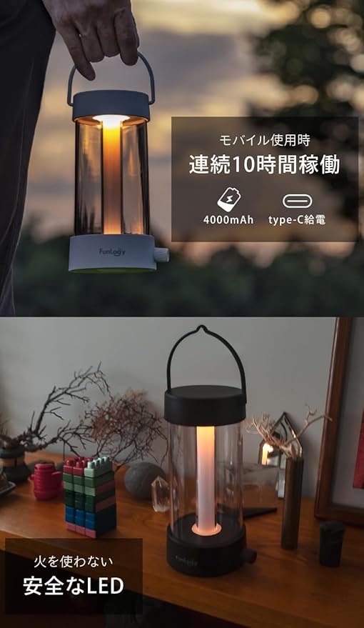 FUNLOGY Lantern(ランタン/LEDランタン)【Type-C 充電式/無段階調光/無段階調色/キャンプ/暖色/バッテリー 内臓/授乳ライト/IPX4/日本限定商品】