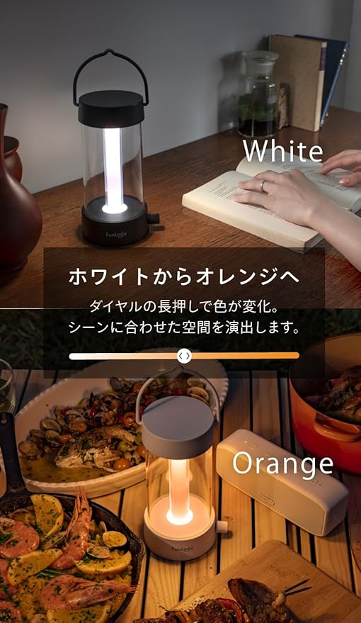 ✅【 心安らぐ時間と空間】 FunLogy Lanternは最大220ルーメンの明るさで、暖かみのある電球色から昼白色まで無段階に調整が可能です。
