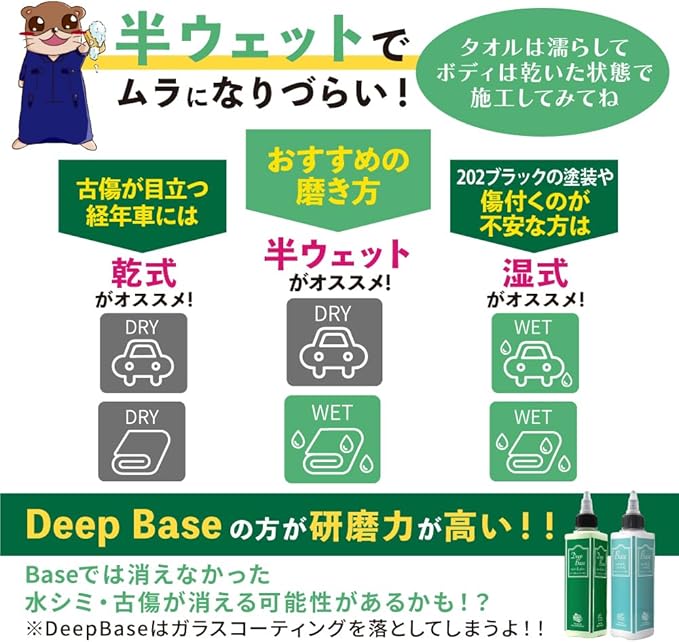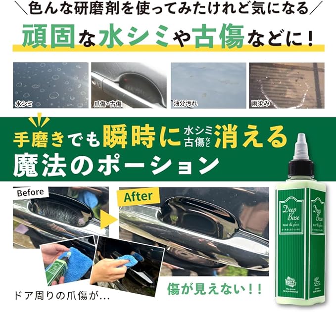 【ながら洗車】DeepBase 120ml ポーチセット『 頑固な水シミや小傷が取れない時の最後の砦 』 ディープベース ウォータースポット コーティング剤 車 イオンデポジット 水垢落とし ガラスコーティングのリセットにも エッジレス アプリケーター マイクロファイバータオル