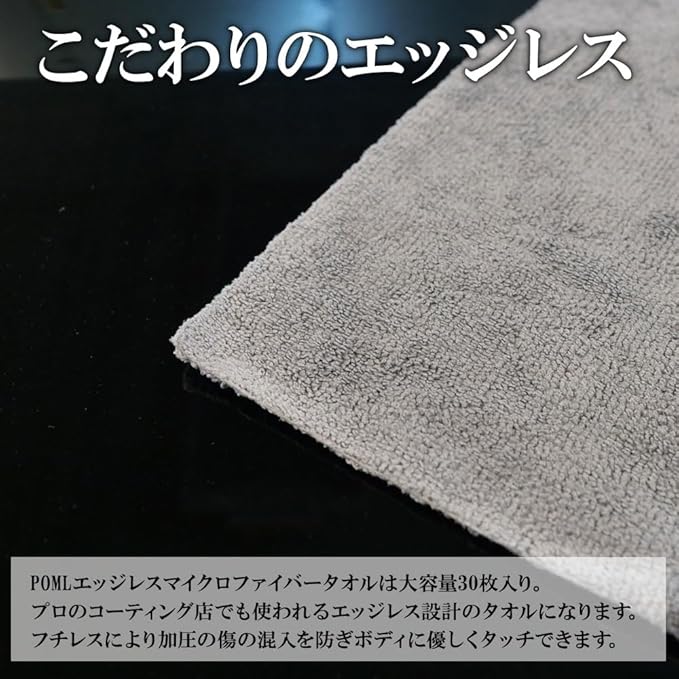 POML ぬぬふぁくとりー エッジレスマイクロファイバークロス いつでも新しいクロスで施工 使い捨て感覚で使えるマイクロファイバークロス 王道の40cm 40cm 使いやすいサイズ感 エッジレス 傷防止 1袋30枚入り ホイール 細部洗浄 内装 クリーニング 外出先 洗車用品 カー用品 ポムル