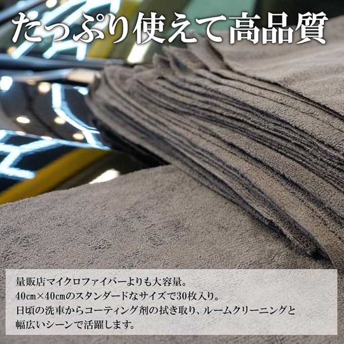 30枚入りの大容量でコーテイング・細部洗浄・水滴の拭き取りにとっても便利です。