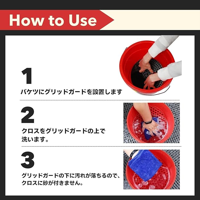 【効率的な洗車】グリットガードを使用することで、バケツ内の汚れをしっかりキャッチし、洗車中に再び車体に汚れが付着するのを防ぎます。これにより、洗車時間を短縮しつつ、より効果的に車を清潔に保つことができます。