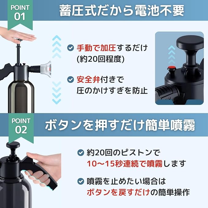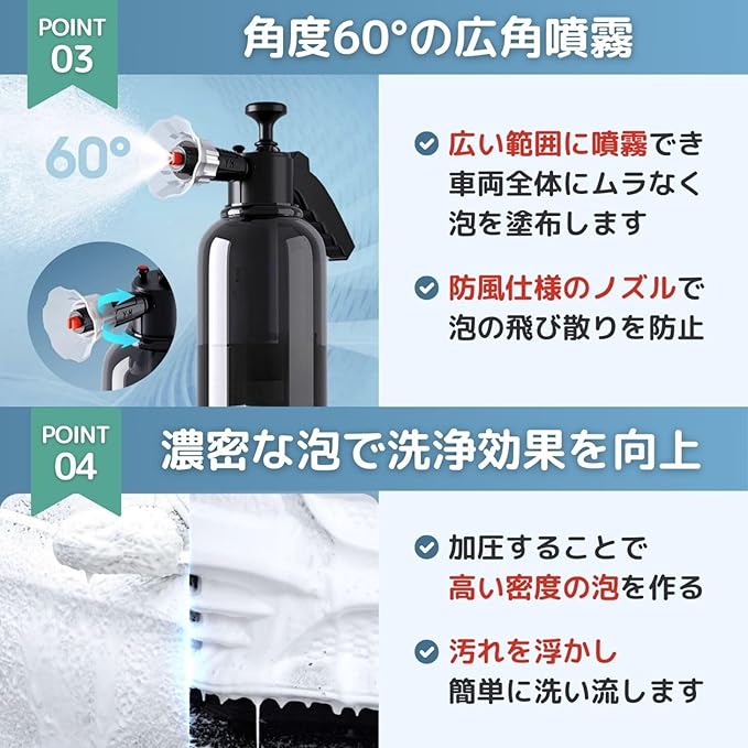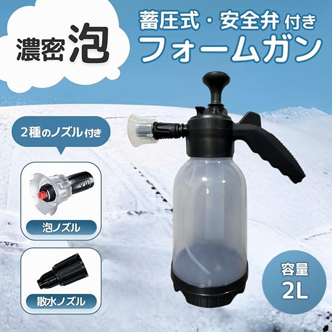 ✅高圧洗浄ができる蓄圧式フォームガン(噴霧器)です。2000mlと大容量なのでミニバン、ワンボックスなどのお車の洗車にもおすすめです。